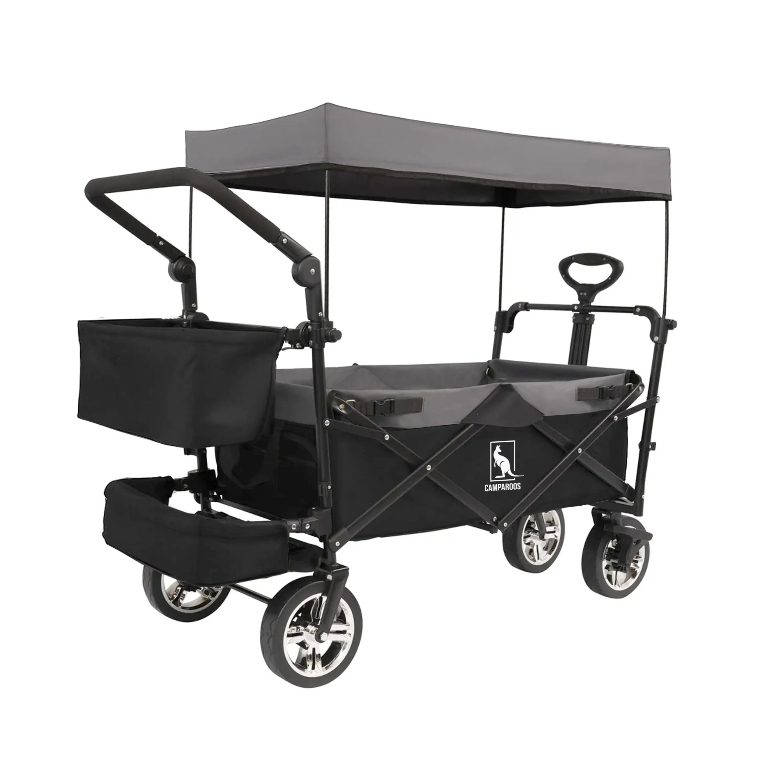 Wagon Trolley Foldable Push-Pull with Canopy – Grey Black